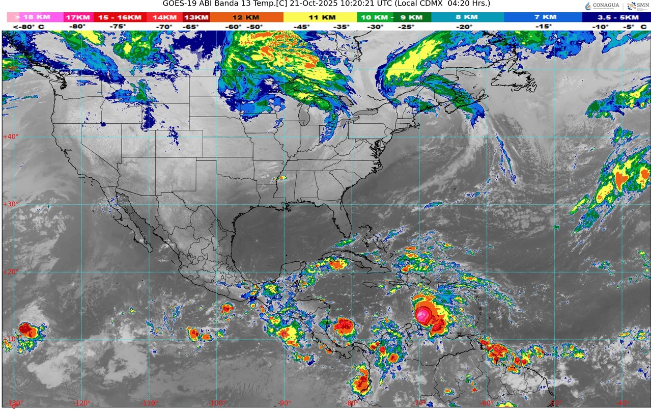 Una zona de baja presión con probabilidad para desarrollo ciclónico al sur de las costas de Guerrero y Oaxaca, originará lluvias fuertes a muy fuertes en dichas entidades. Otro canal de baja presión se extenderá sobre el occidente y centro del territorio nacional, y, en combinación con el ingreso de humedad del océano Pacífico y golfo de México, ocasionarán lluvias y chubascos en dichas regiones.